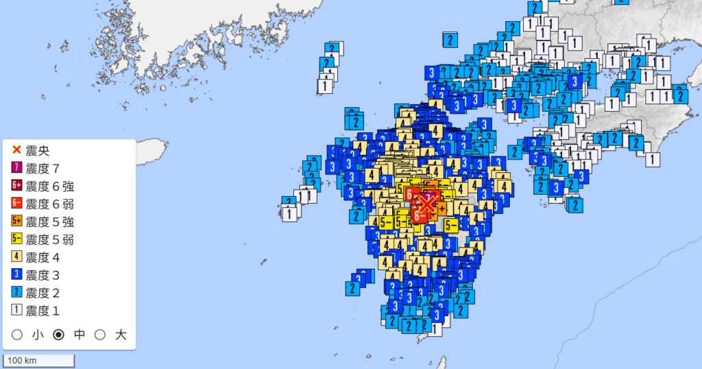 | 22:07 | 熊本県熊本地方 | M5.8 | 8km | 6弱 |