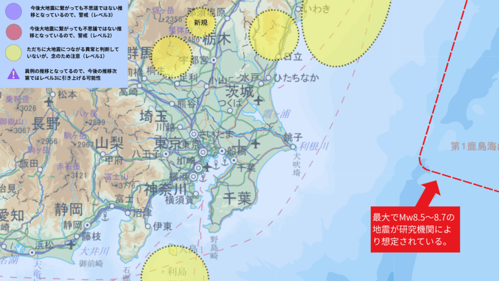 • 東北地方太平洋沖地震前の推移と酷似する点が多いこと