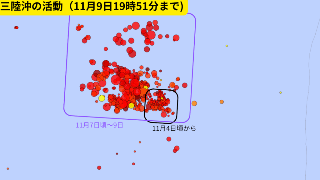 • 日本海溝沿いの割れ残りエリアで活発化していること