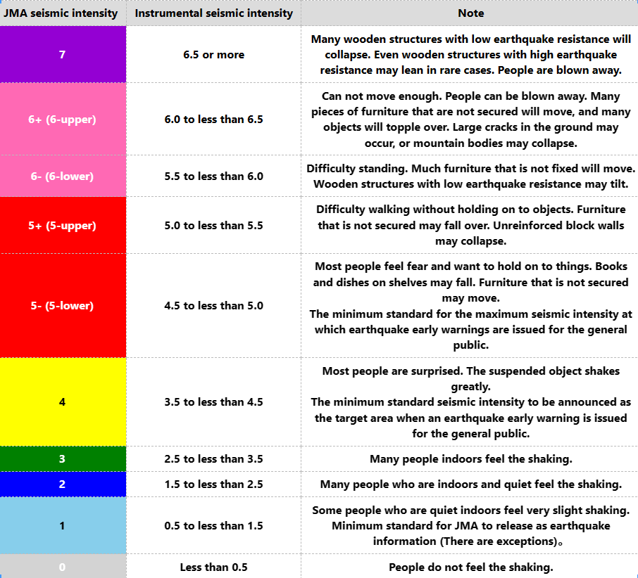 Thus, the seismic intensity classes of the JMA exist up to seismic intensity 7. So, there is no class above seismic intensity 8 (*The reason will be explained later in a separate article).