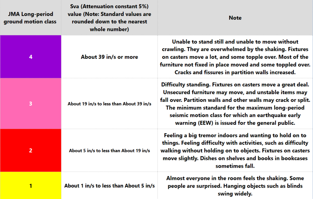 JMA has included long-period seismic tremors in its earthquake early warning announcements starting in 2023, as well as on TV and other media when an earthquake of a certain magnitude and magnitude occurs. Therefore, many members of the public may be hearing about long-period seismic motions for the first time. It is explained in detail here.