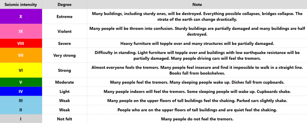 The seismic intensity is explained in a separate article if you would like to know more details.