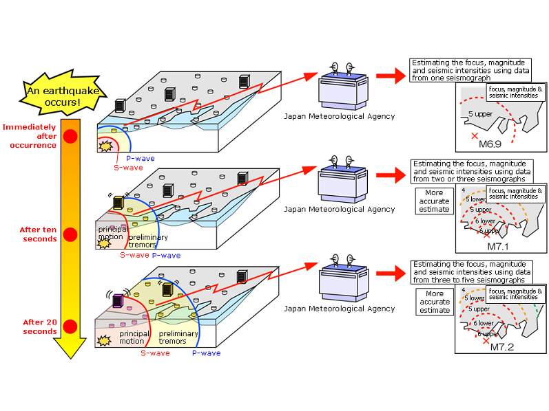 However, this has the disadvantage that it takes several seconds from the detection of the Primary wave to the delivery of the preliminary report, so the preliminary report often does not arrive in time if it is close to the epicenter.